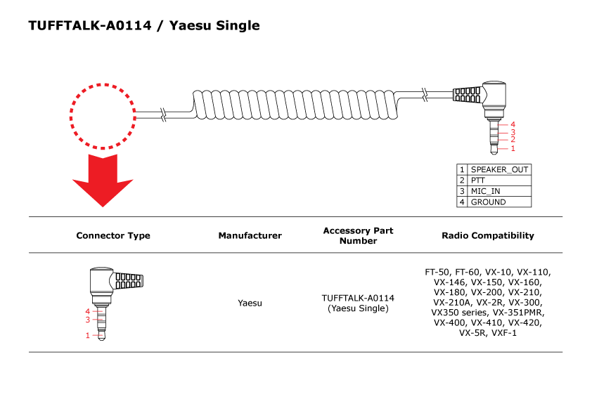 2-way Radio Cable for Yaesu Single-pin Connector for Tufftalk